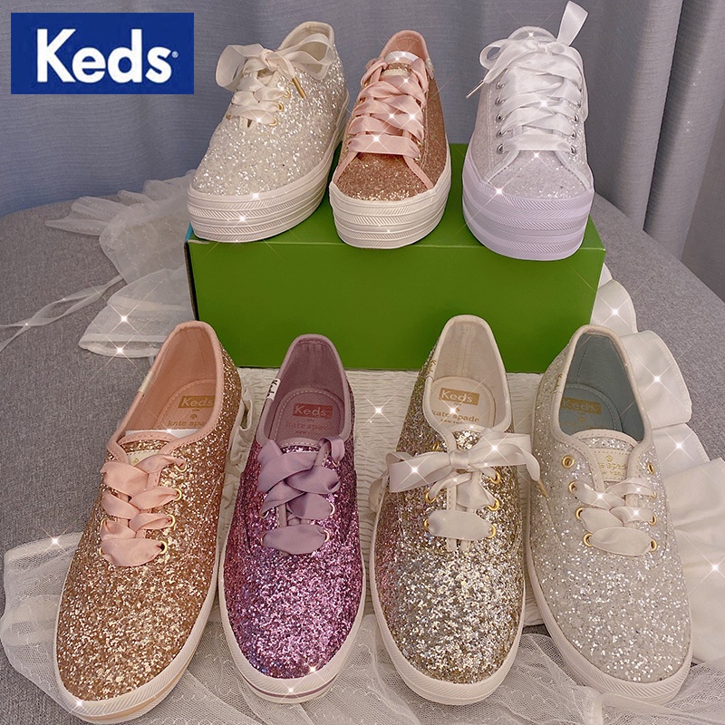 Keds X Kate Spade Cooperative Style Sequined Wedding Shoes White Women S Platform Single Thick Soled Sweet Lace Up Quality Good Shopee Philippines